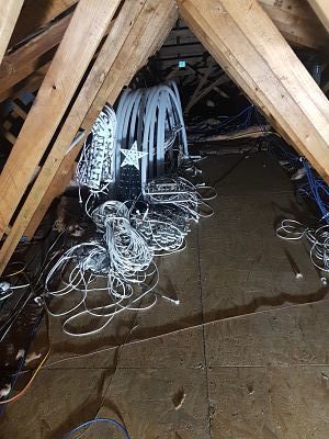 March: started drilling conduit for new frames around the front door and windows to allow the pixels to be more directional.