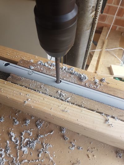 What I did here is what I have done above in project 6. I Drilled 12mm holes every 50mm through the conduit and also the corner pieces so now all the lights face the same way and the spacing looks much better.